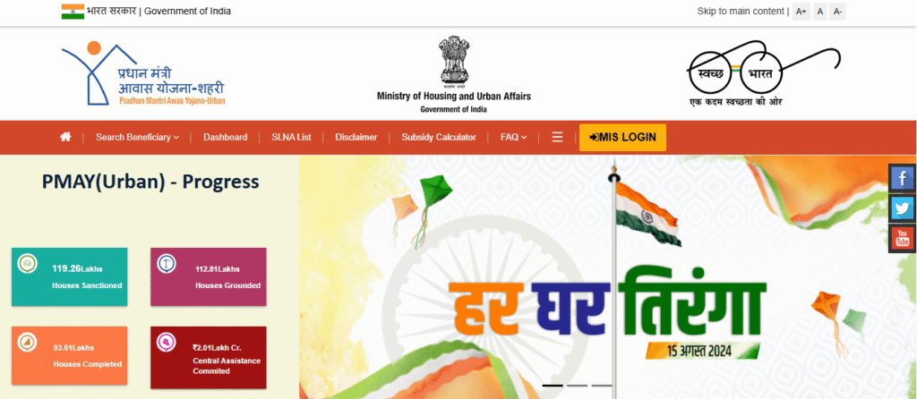 - PMAY की ऑफिशियल वेबसाइट pmaymis.gov.in पर जाएं