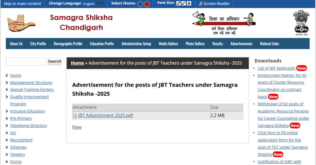 Short Description: Chandigarh JBT Teacher Recruitment 2025 Successfully Submitted Application List : Samagra Shiksha Chandigarh JBT Primary Teacher Online Form 2025, Notification has been released on the website https://ssachd.nic.in/ & Application Form was started from 07 August 2025 to 28 August 2025. Get the direct link to download notification & apply online form available on Chandigarh JBT Teacher Vacancy 2025 Official Website and more details like Age Limit / Qualification / Vacancy Details / Syllabus / Exam Pattern / Admission and others are available on official website & yojnanaukri.com.